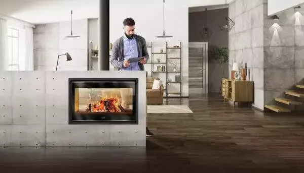 Il caminetto moderno ha il focolare chiuso da un vetro temperato e il calore prodotto al suo interno, anziché essere disperso nella canna fumaria, viene recuperato tramite particolari accorgimenti e re-immesso nell’ambiente domestico tramite bocchette di areazione.