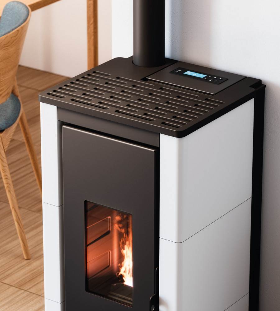 Caratteristiche: • Porta e Braciere in ghisa • Camera stagna • Comfort mode • Programmazione giornaliera settimanale • Wi-fi e Bluetooth Integrato • Scarico fumi Superiore • Collegamento termostato esterno • Telecomando (opzionale)