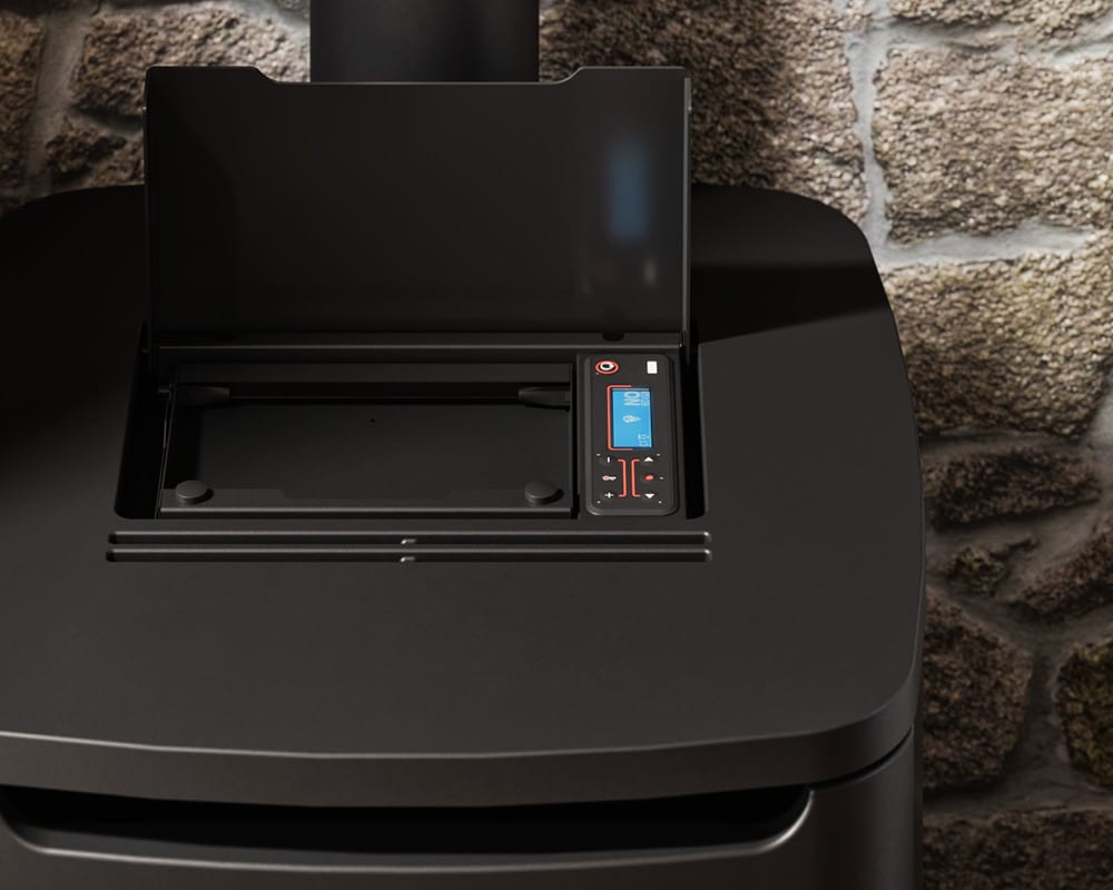 Caratteristiche: • Porta, Braciere, top, griglia e piedini sono interamente in ghisa • Interno in ghisa • Camera stagna • Comfort mode • Programmazione giornaliera settimanale • Wi-fi e Bluetooth Integrato • Scarico fumi superiore • Collegamento termostato esterno • Telecomando (opzionale)