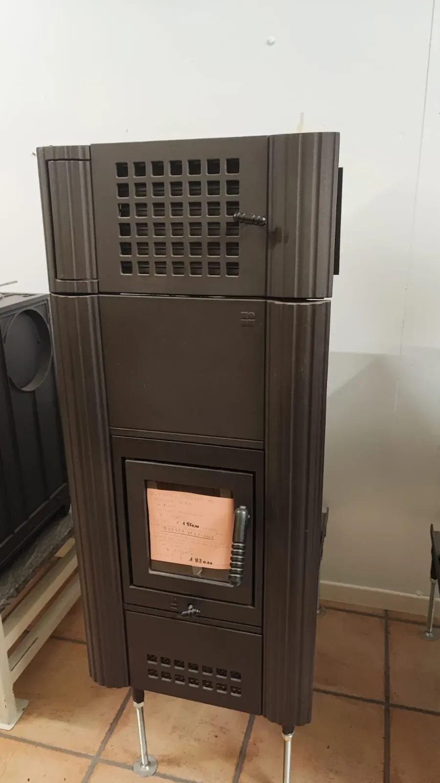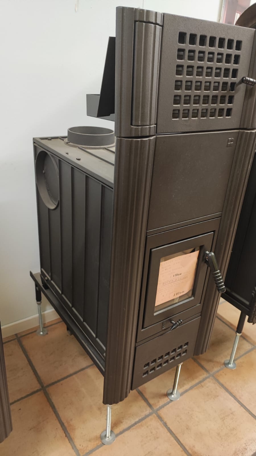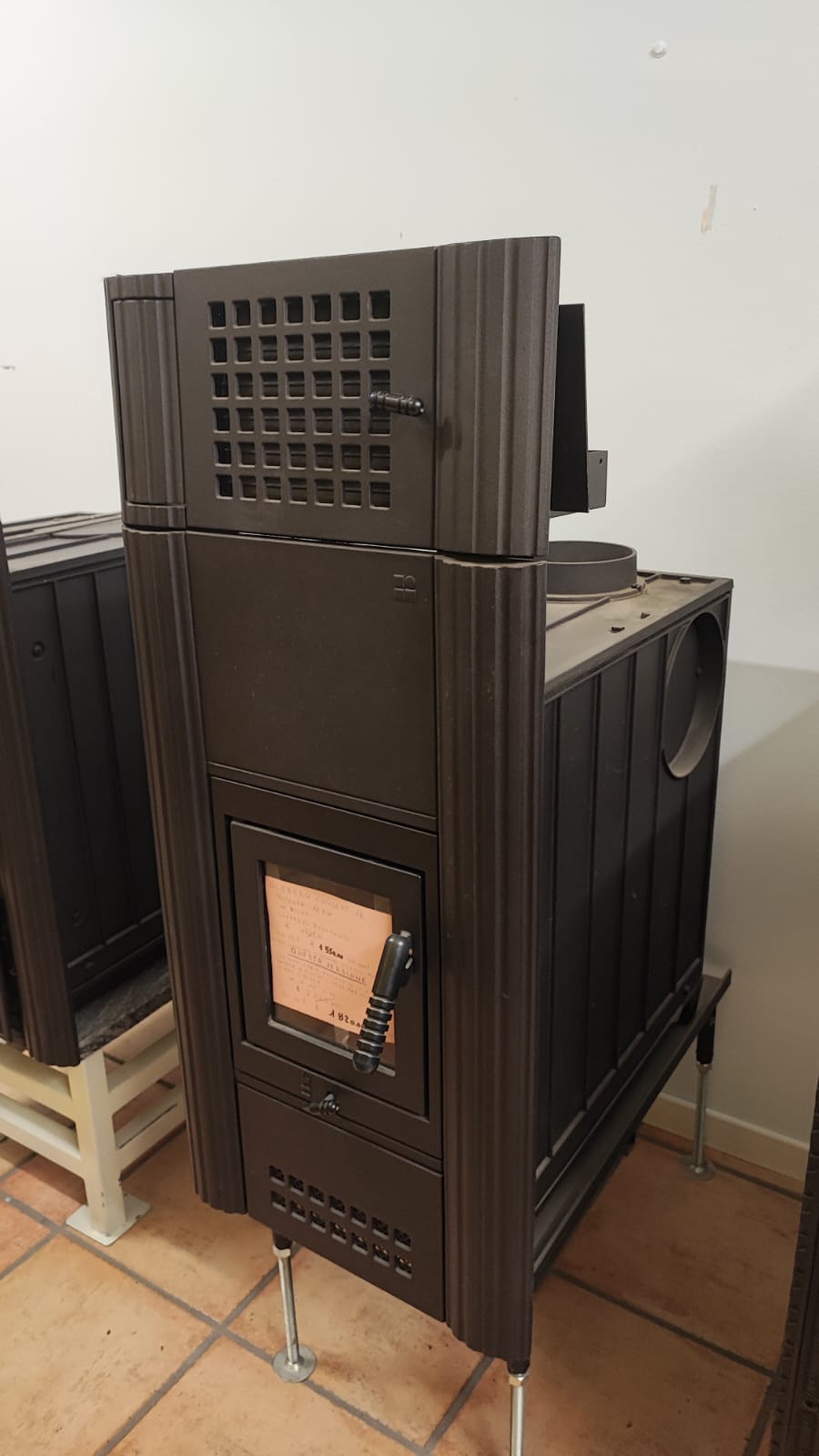 Versione con diffusore in facciata – Compreso di Staffa di supporto con piedini regolabili – Uscita Fumi Superiore/Posteriore/Fianco Destro/Fianco Sinistro – 1 Regolazione della combustione – No cassetto della cenere estraibile
