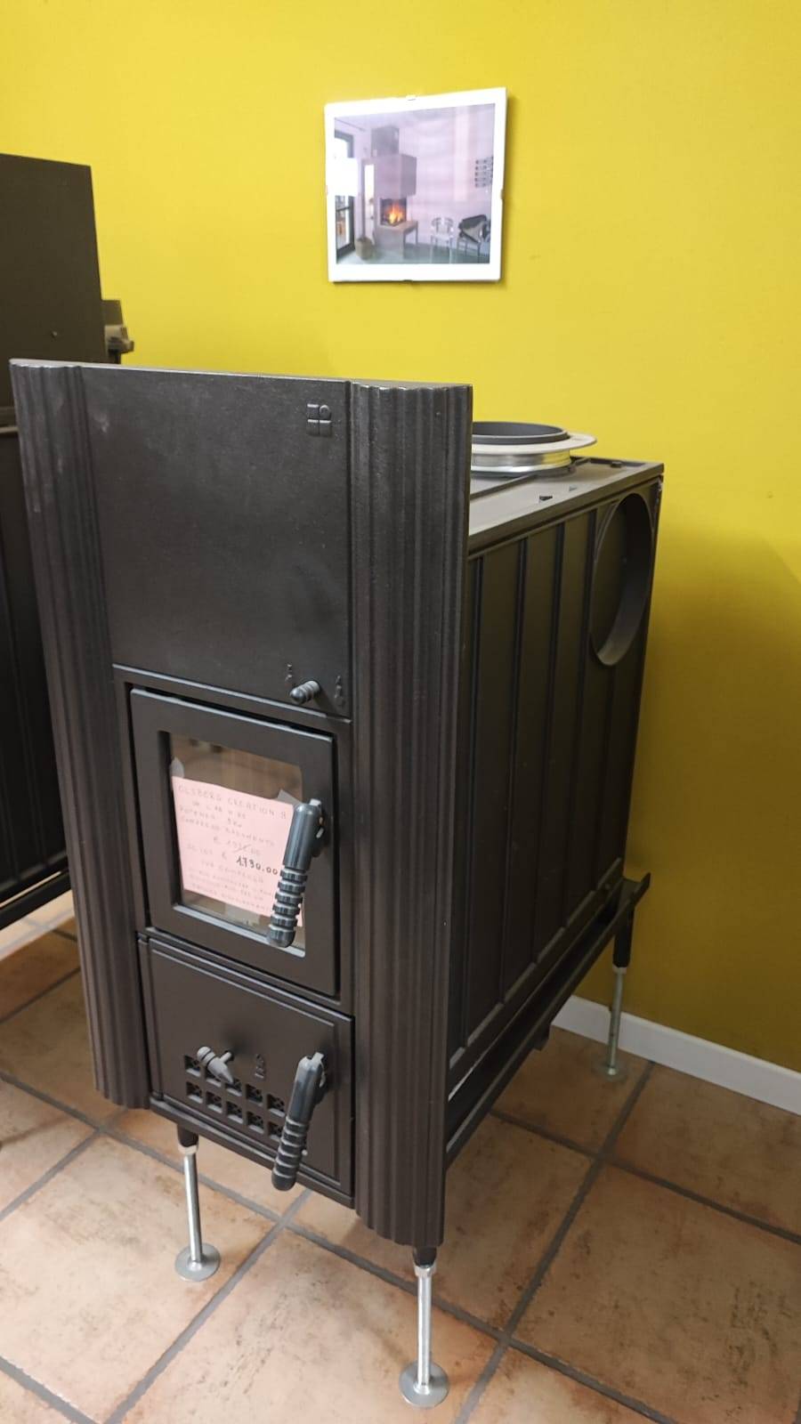 Compreso di Staffa di supporto con piedini regolabili – Uscita fumi Superiore/Posteriore/Fianco Destro/Fianco Sinistro – 2 Regolazione della combustione – Asta scuoti cenere – Cassetto cenere estraibile