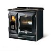 Caratteristiche: • Cassetto cenere estraibile • Focolare in ghisa • Piastra e cerchi in ghisa levigata • Porte, facciata e telaio in ghisa smaltata • Aria primaria e secondaria regolabile per migliore gestione combustione • Sistema di post-combustione per basse emissioni • Cassetto porta legna estraibile • Forno in acciaio smaltato porcellanato da 78 l • Vetro ceramico • Porta fuoco in ghisa con doppio vetro • Uscita fumi superiore centrale o posteriore • Padella forno smaltata (1 pezzo) • Griglia forno cromata (1 pezzo)